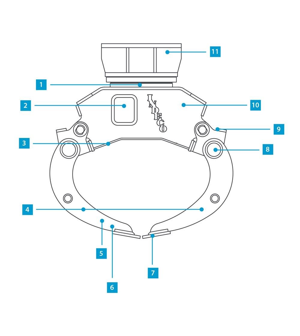5. Jaws interchangeable according to the material to be handled and the specific use required.